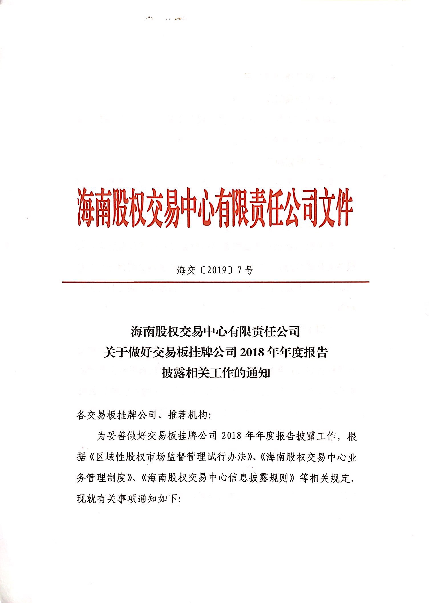 關(guān)于做好交易板掛牌公司2018年年度報告披露相關(guān)工作的通知
