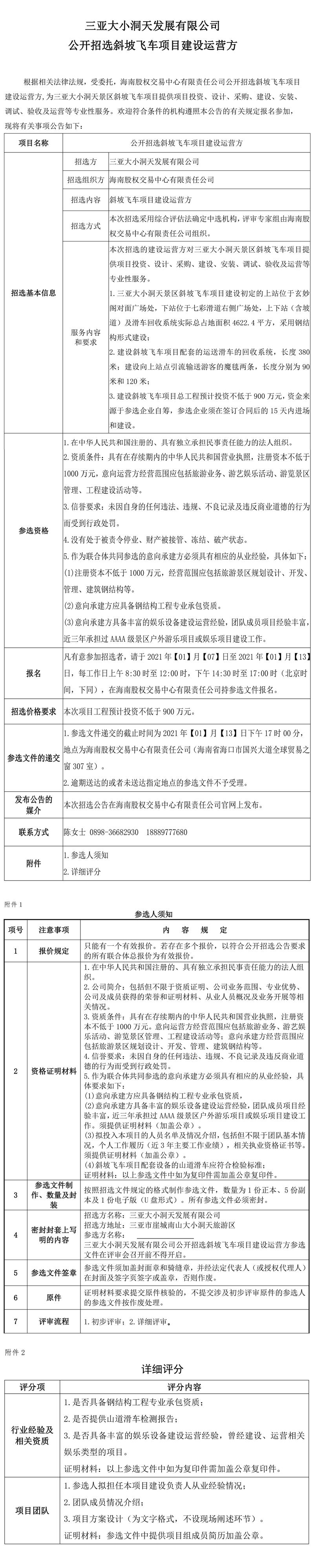 關(guān)于三亞大小洞天發(fā)展有限公司公開招選斜坡飛車項(xiàng)目建設(shè)運(yùn)營(yíng)方的公告